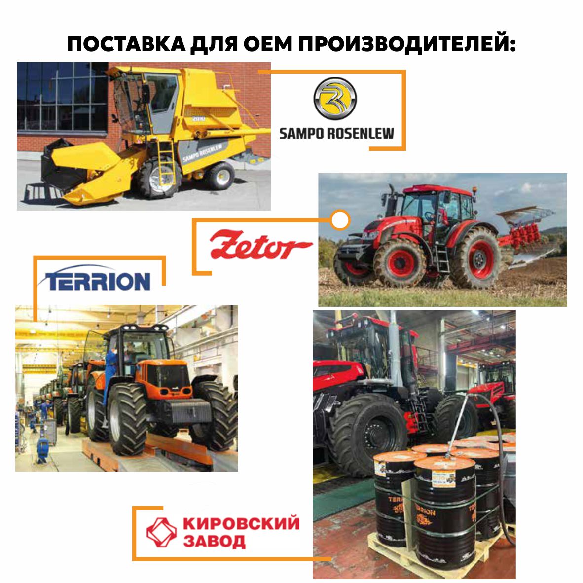 - поставщик для производителей техники: SAMPO ROSENLEW, Zetor, Terrion, Кировский завод